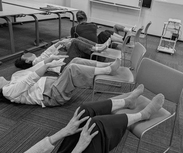 今回も大地先生に体のしくみや良い姿勢についての講義とトレーニ