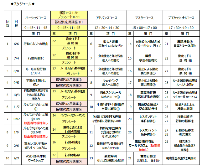 次年度の行動分析学セミナーのスケジュール(暫定)が決まりましたので、お知らせします。 内容についての変更がある可能性もあります。